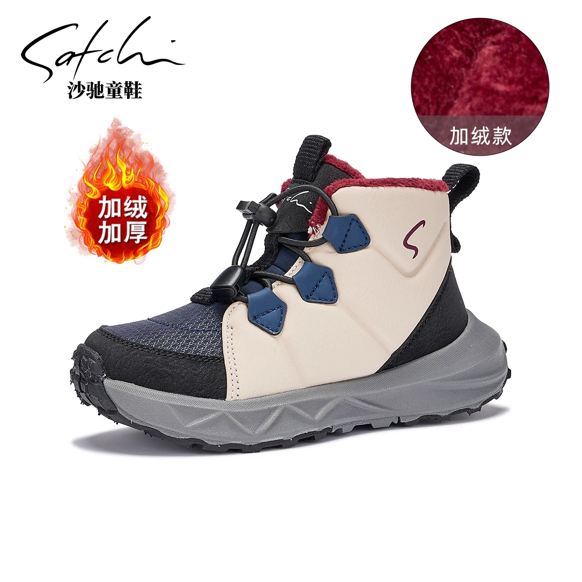 沙驰童鞋儿童加绒运动鞋高帮2026冬季保暖女童棉鞋防滑男童二
