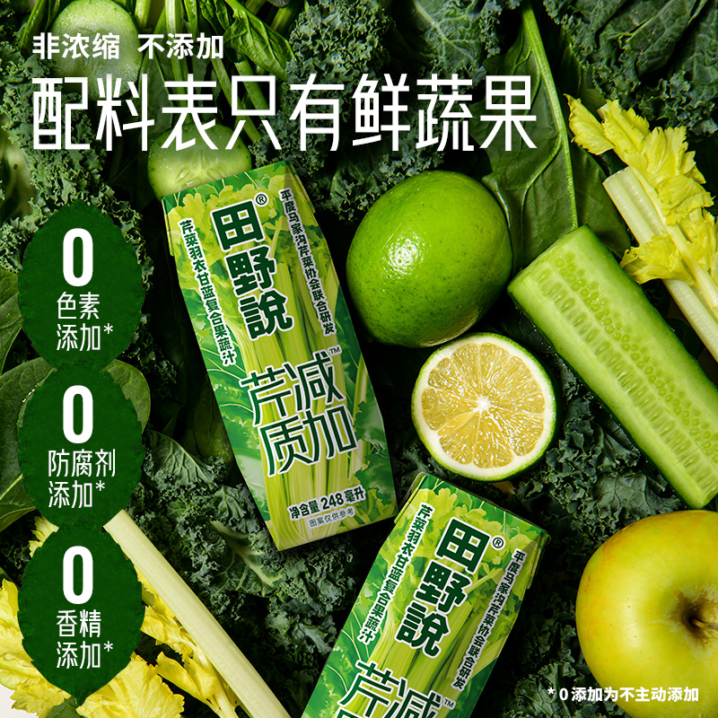 牛选号 田野说芹菜羽衣甘蓝复合果蔬汁248ml*10瓶