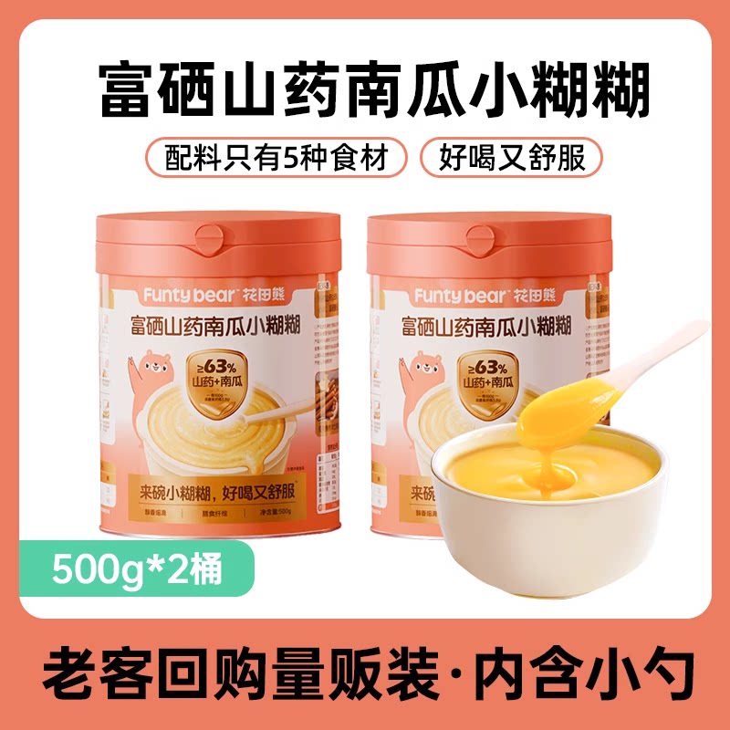 牛选号 花田熊富硒山药南瓜小糊糊罐装500g*2罐