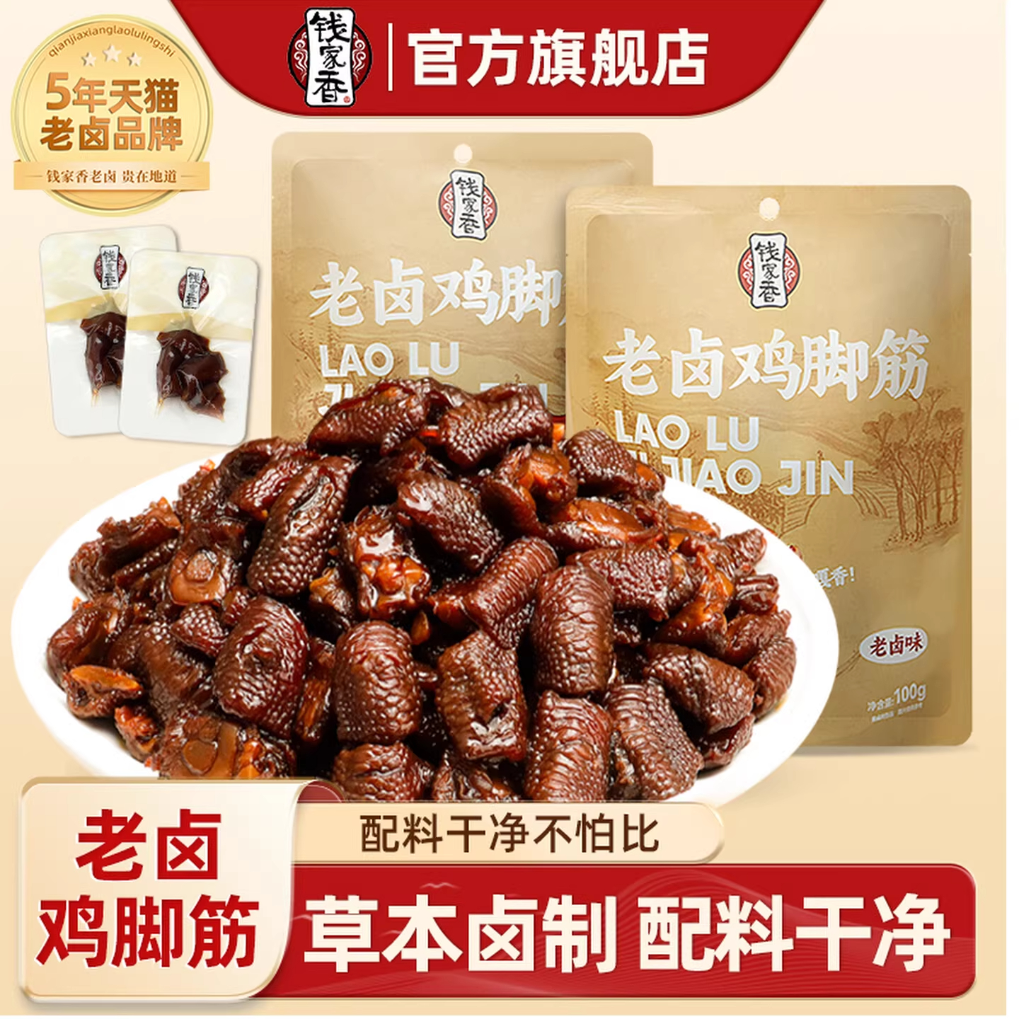 钱家香老卤鸡脚筋(原味/香辣)100g*5
