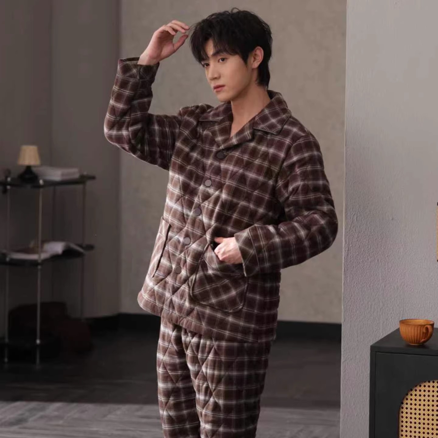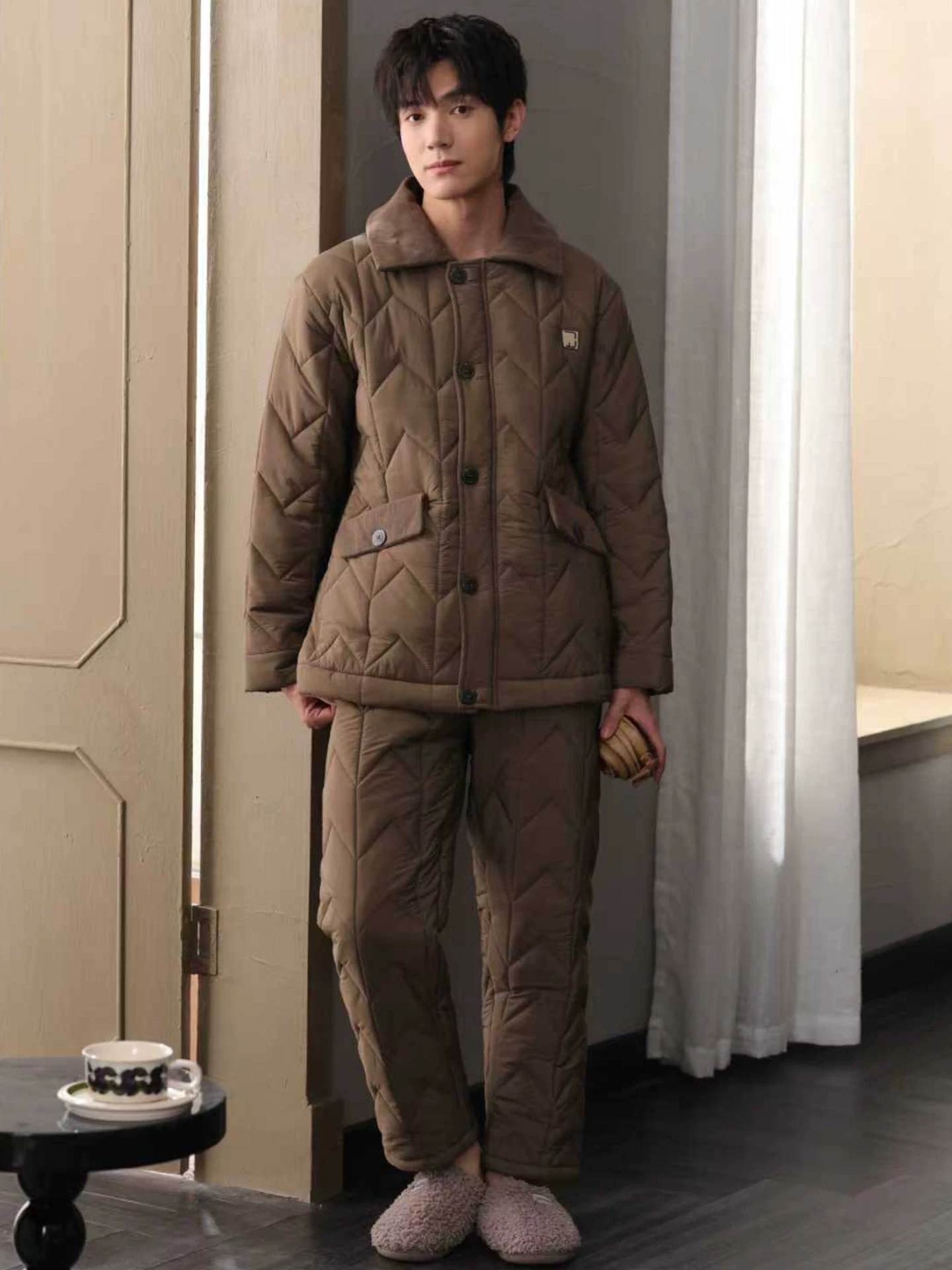 男士冬季冬天三层加厚夹棉袄加绒冬款可外穿家居服套装