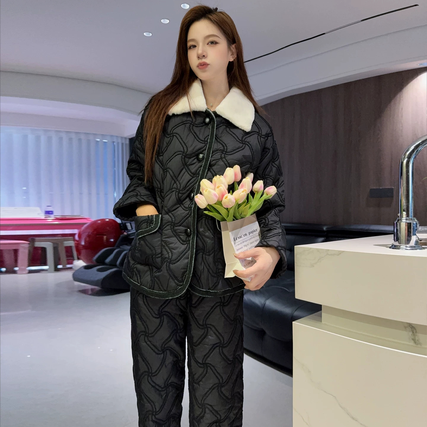加厚加绒冬季新款可外穿大口袋家居服冬季保暖套装