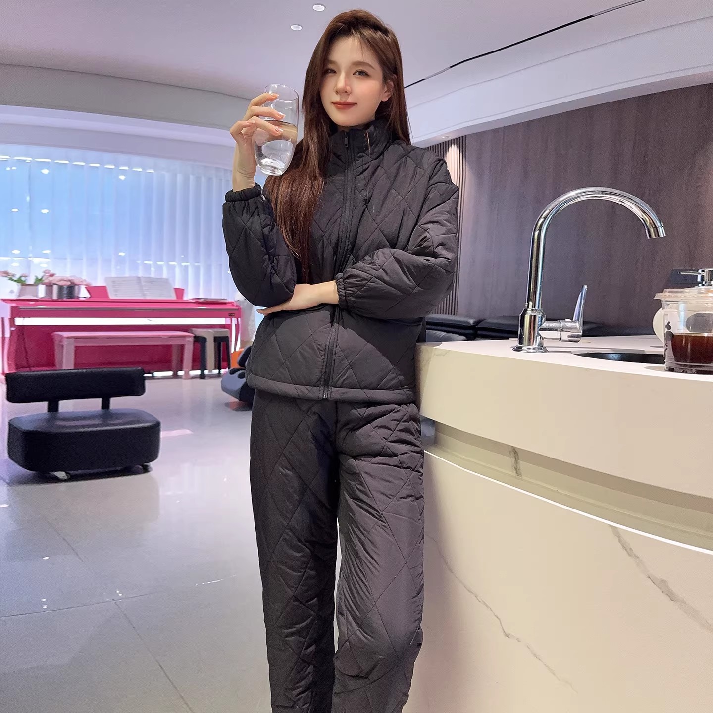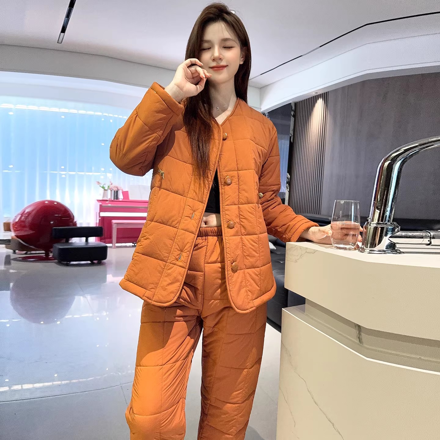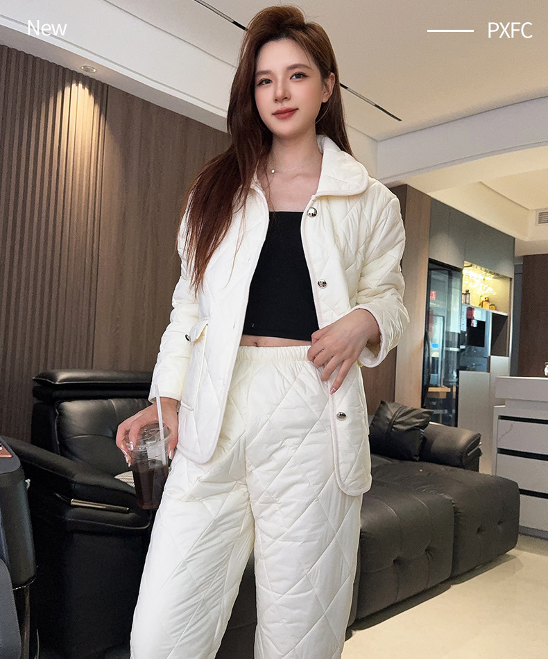 新款夹棉宽松气质时尚高级感圆领开衫家居服