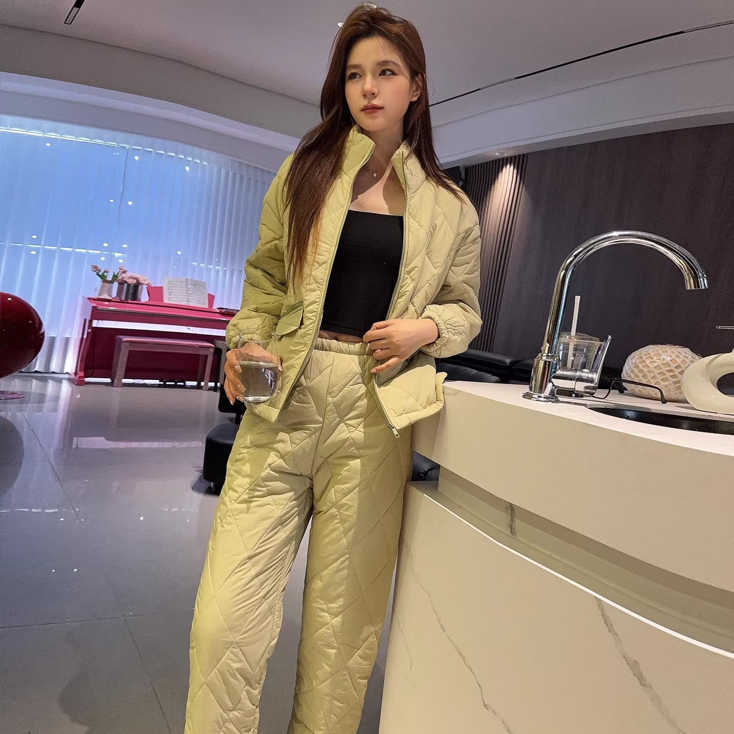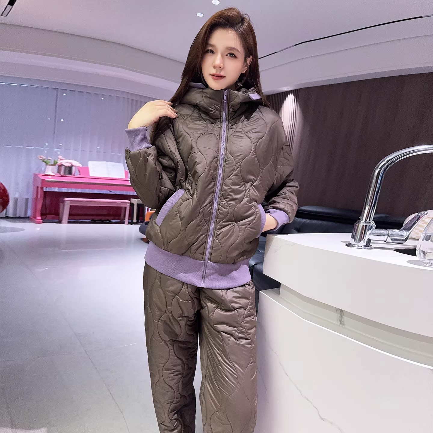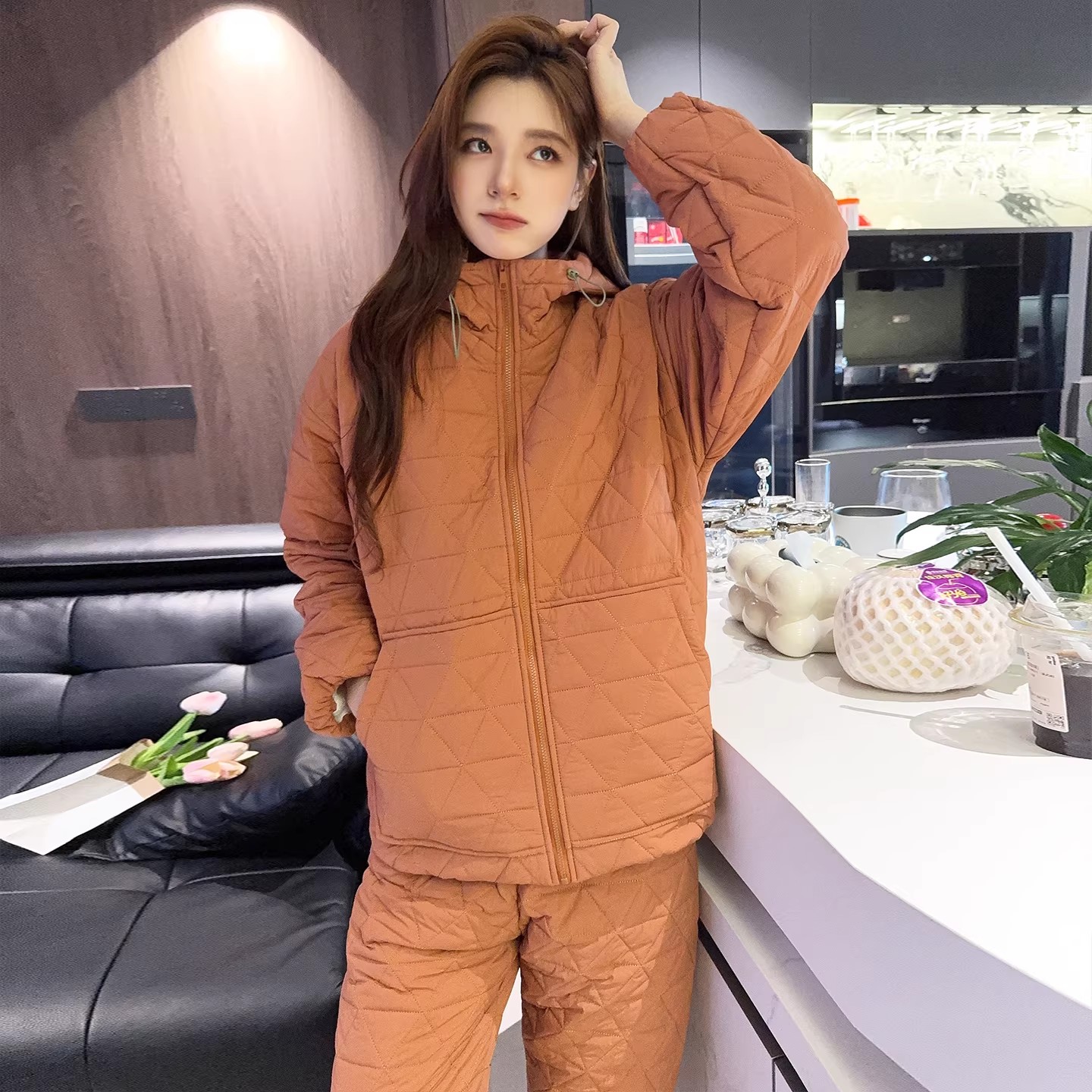 新款夹棉宽松气质时尚高级感圆领开衫家居服