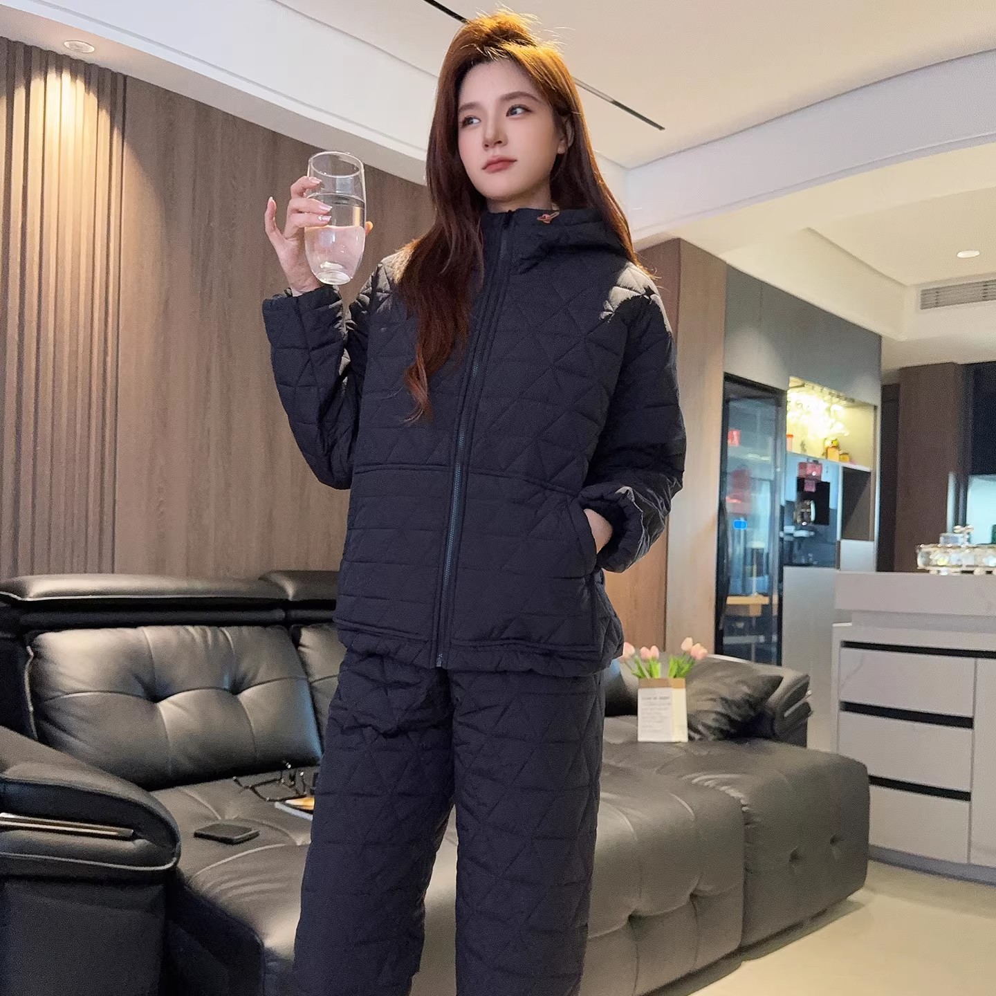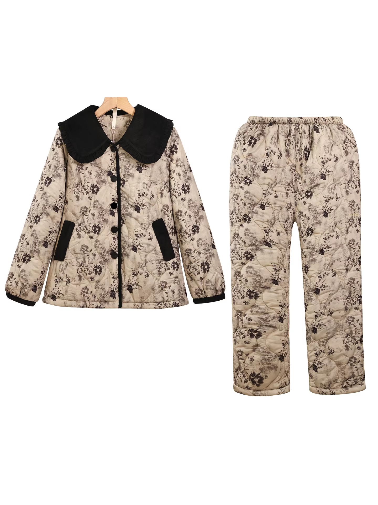 三层夹棉袄纽扣防水简约风加绒家居服