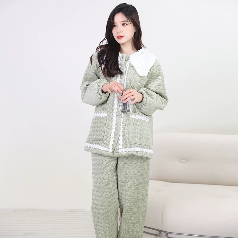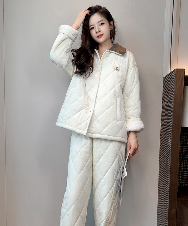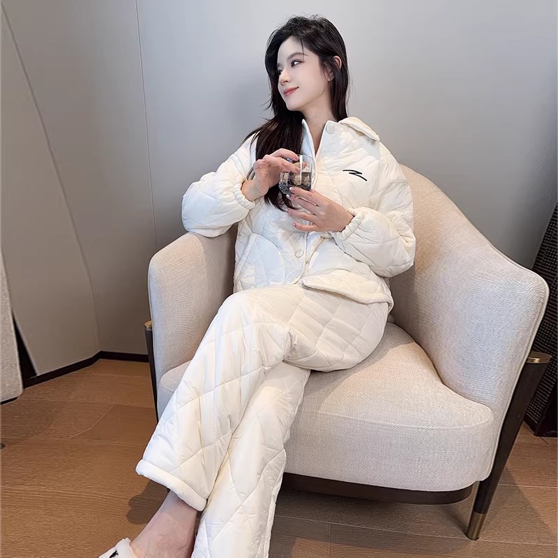 格子夹棉冬天加厚加绒家居服