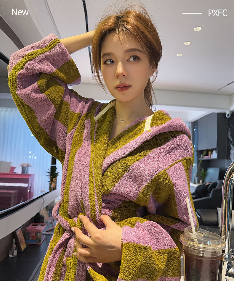 时尚条纹全棉浴袍吸水速干