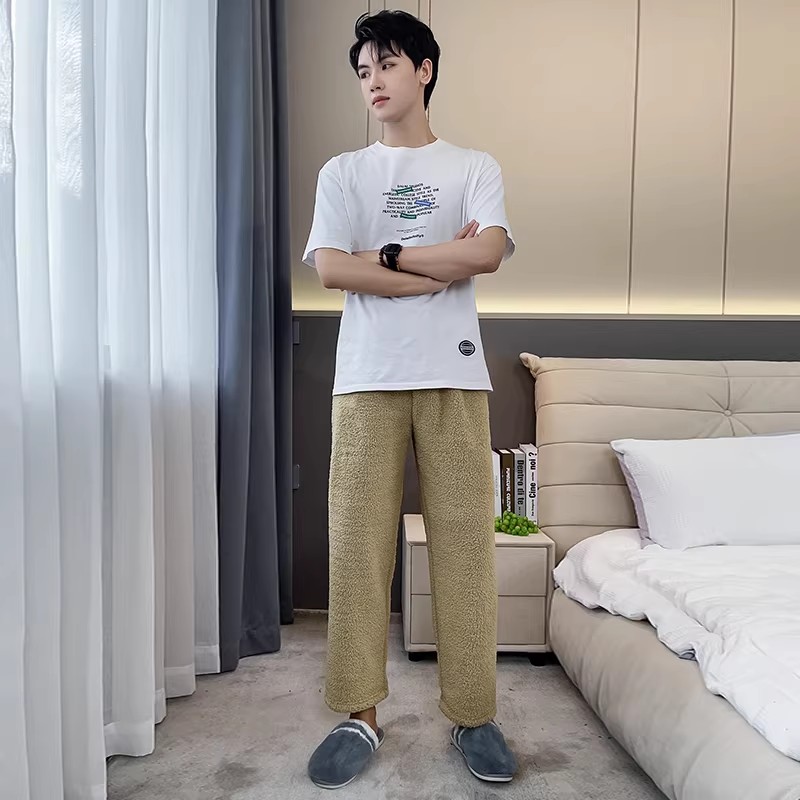 睡裤女秋冬2026新款情侣加厚保暖颗粒绒双层仿羊羔绒