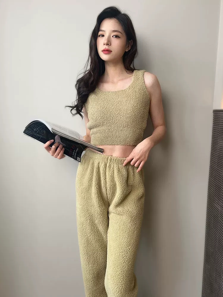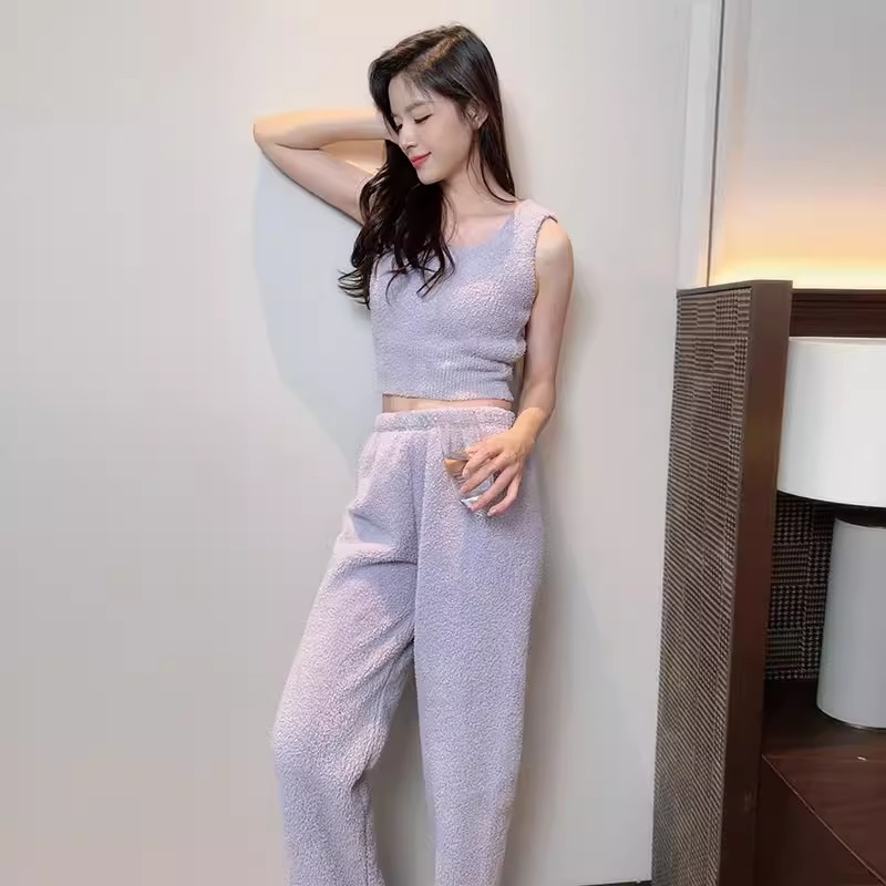 半边绒背心打底吊带睡衣女款秋冬双层防凸点贴身家居服