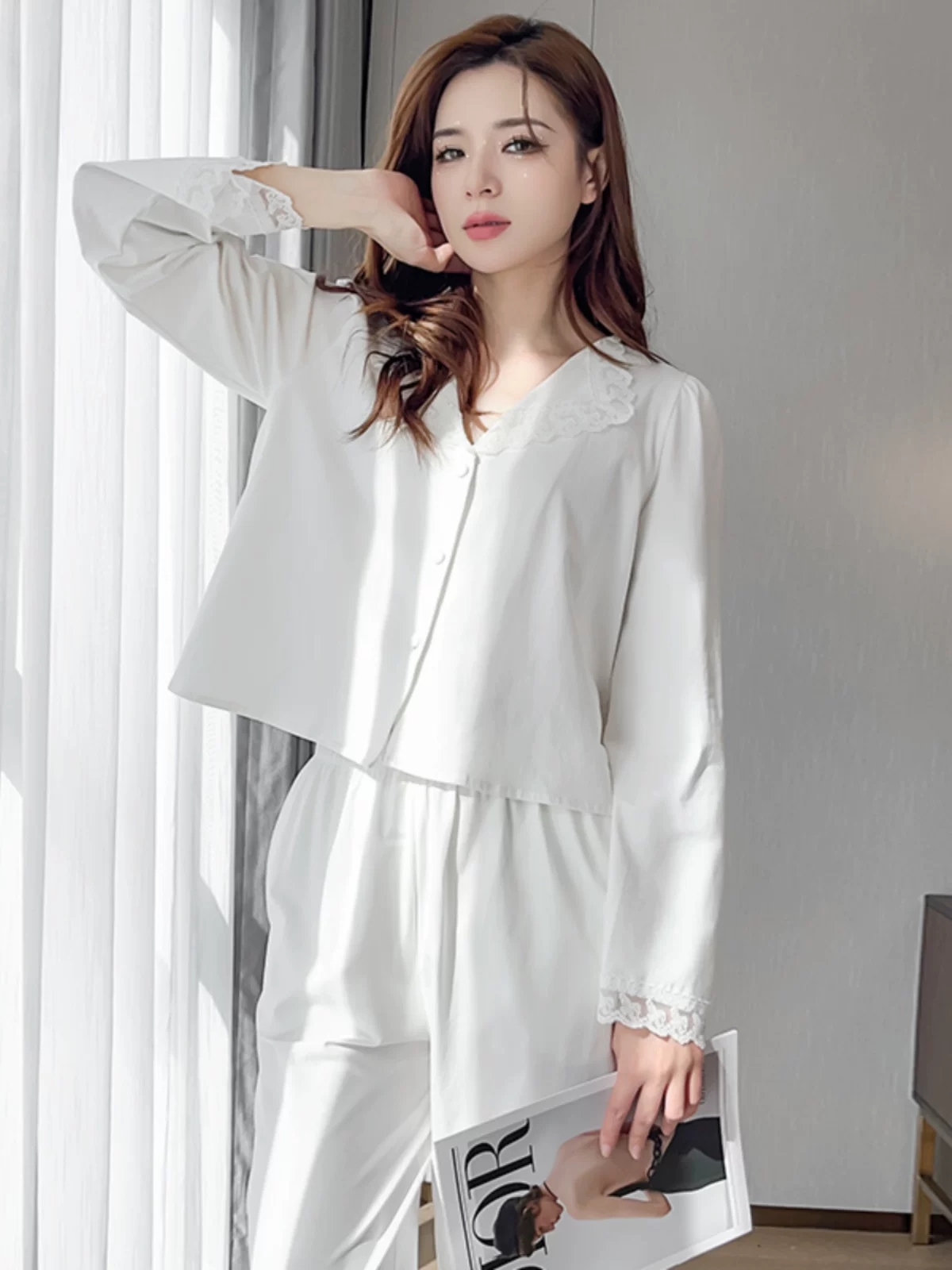 棉质长袖开衫两件套