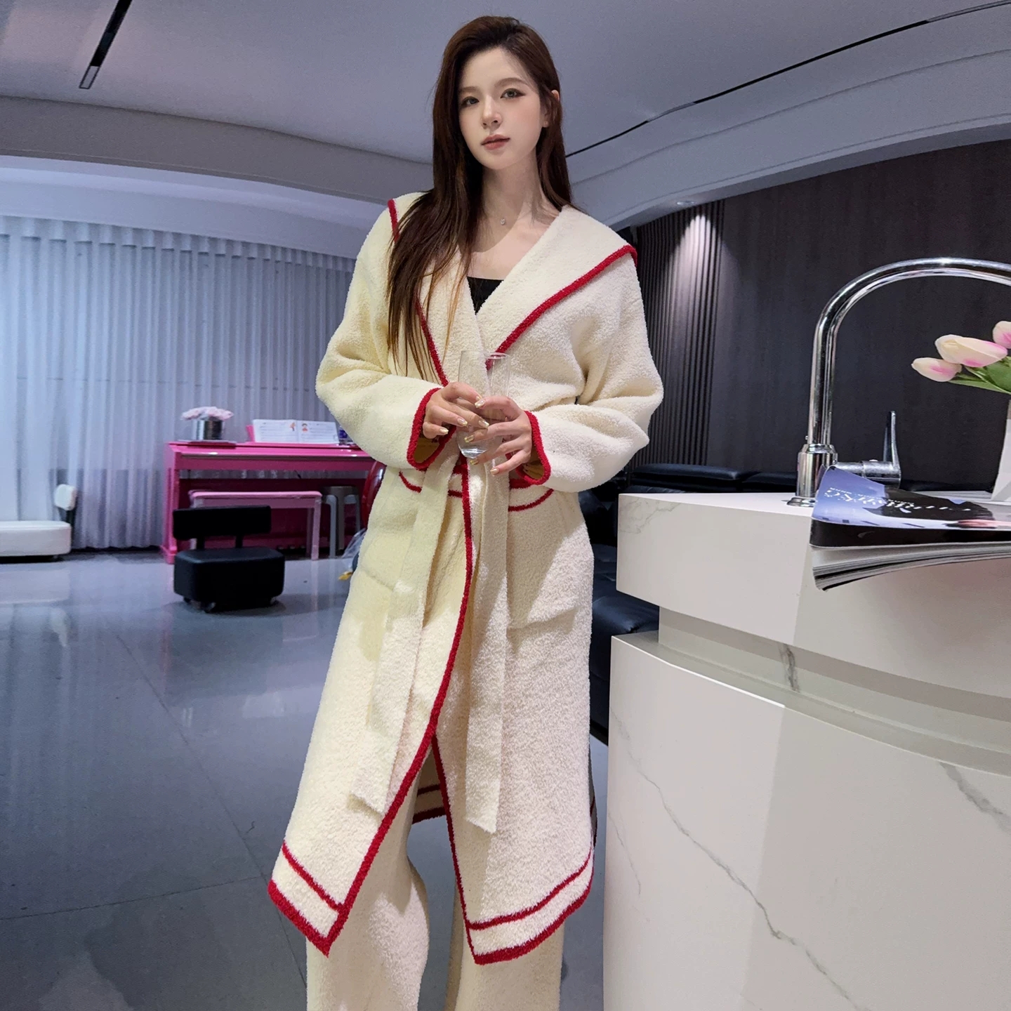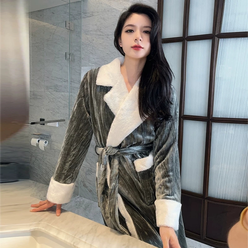 西装领金钻绒睡袍女士