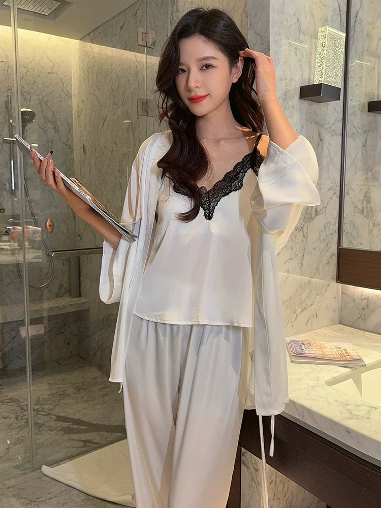 冰丝吊带睡衣夏天三件套装