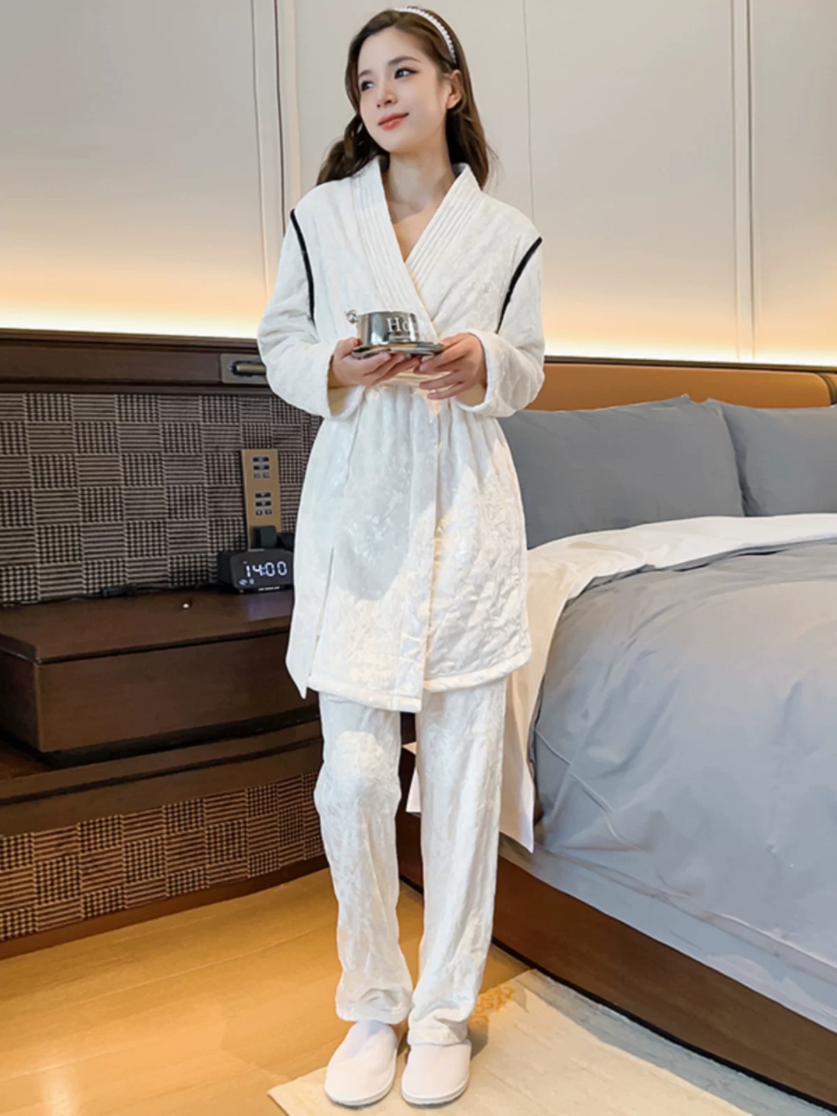 珊瑚绒加绒夹棉加厚睡衣