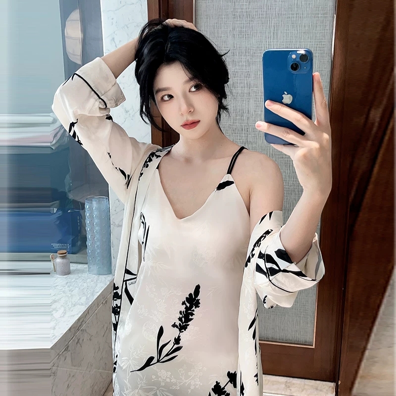 冰丝晨袍吊带睡裙睡袍两件套装
