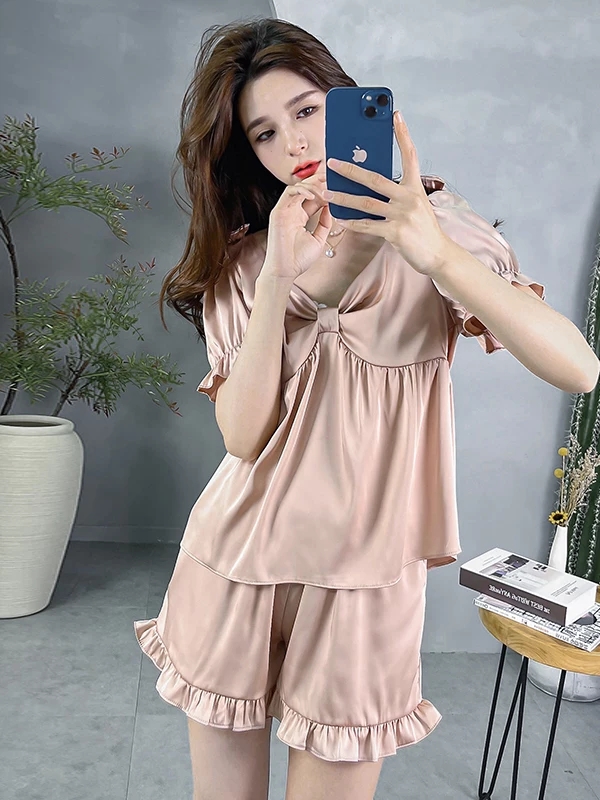 7728套装粉色睡衣 带胸垫