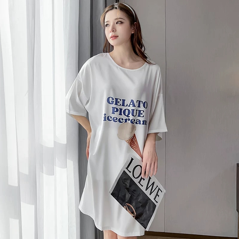 短袖甜美卡通冰丝睡裙