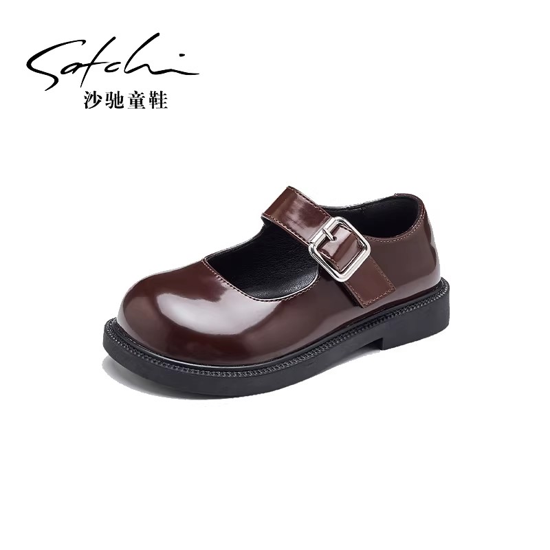 沙驰童鞋女童皮鞋软底黑色小皮鞋