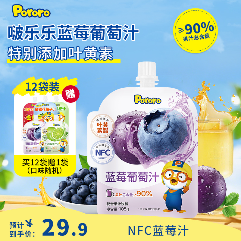 啵乐乐Pororo蓝莓葡萄汁 饮料105g*12袋