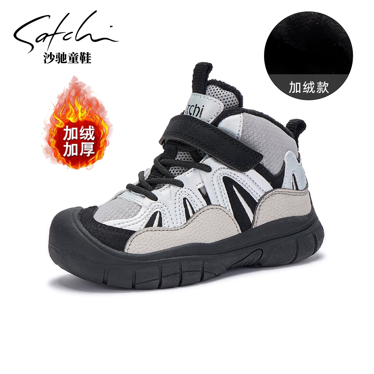 沙驰童鞋儿童棉鞋冬季加绒二棉高帮女童运动鞋保暖男童