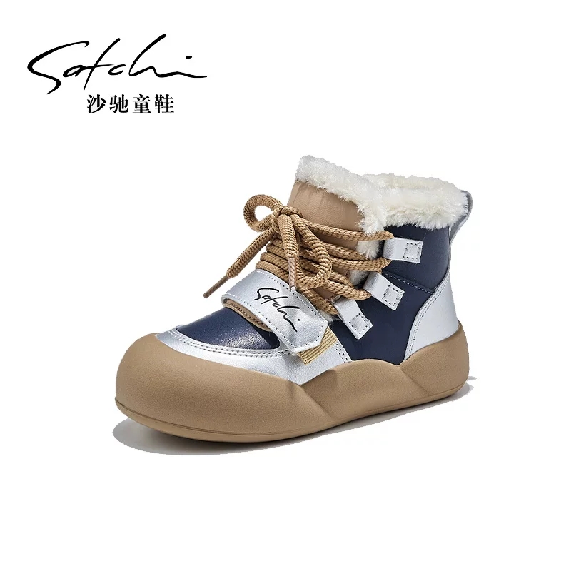 沙驰童鞋儿童雪地靴皮毛一体加绒