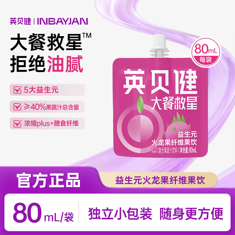 英贝健益生元火龙果纤维果饮80ml*12袋