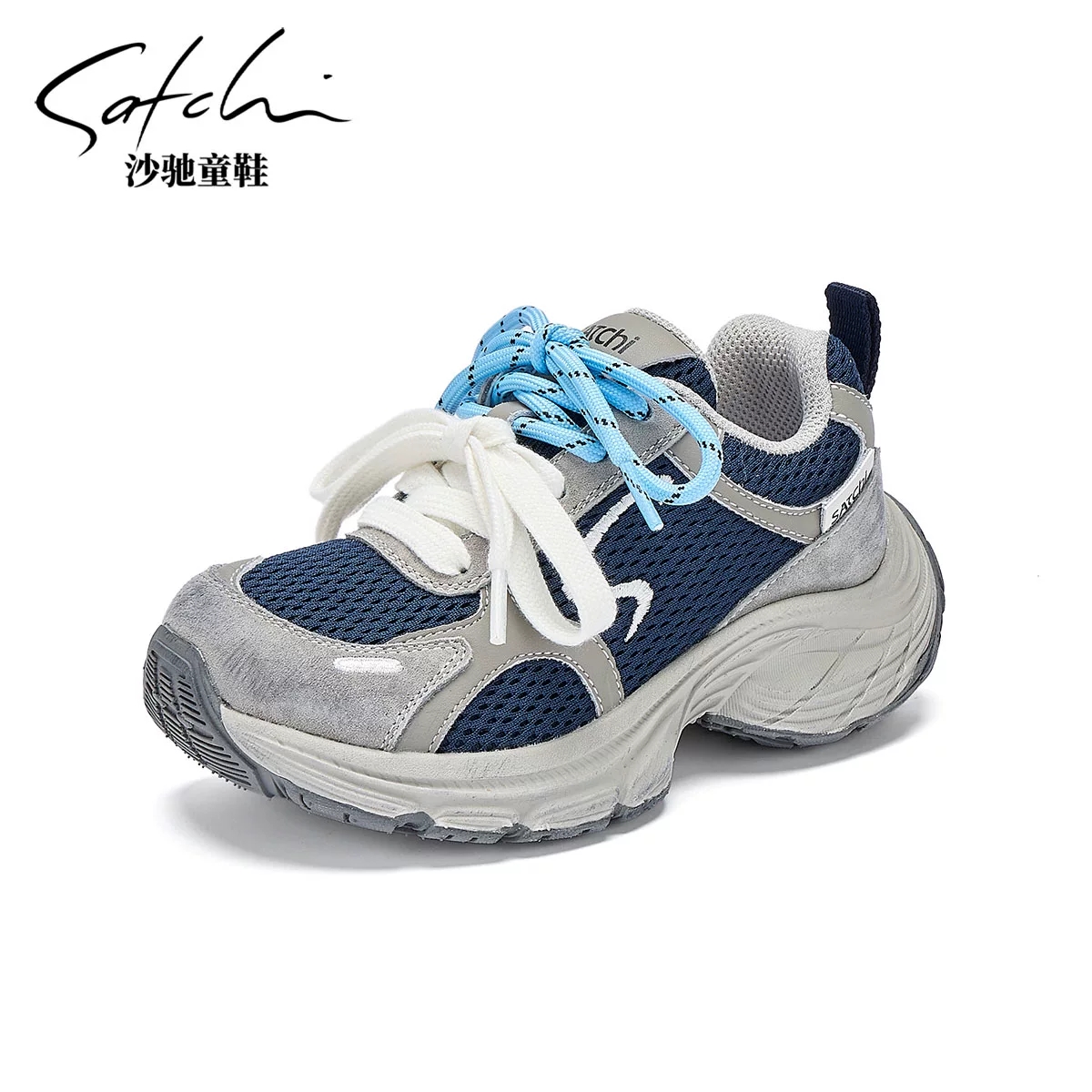 沙驰童鞋儿童老爹鞋女童网面运动鞋软底防滑男童