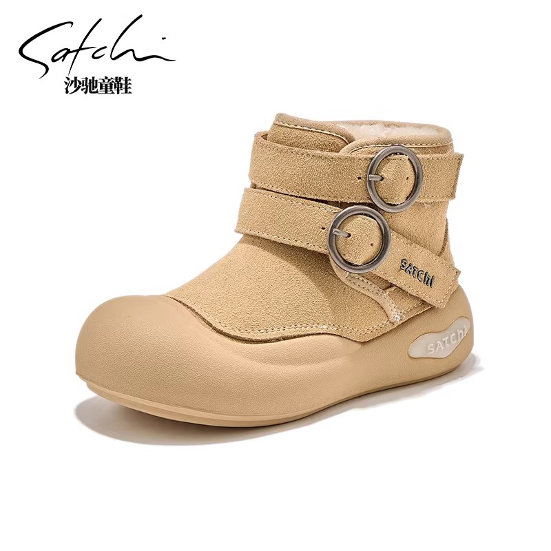 沙驰童鞋儿童雪地靴皮毛一体加绒
